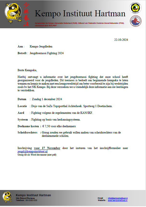 Kempo Nederlands Kampioenschap Fighting/ Traditional 2024